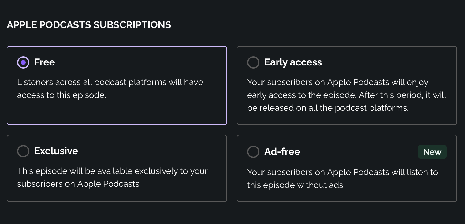 For the podcaster, Apple Podcasts Subscriptions are an exciting way for RSS.com users to monetize their shows by offering premium content to listeners for a small monthly fee.