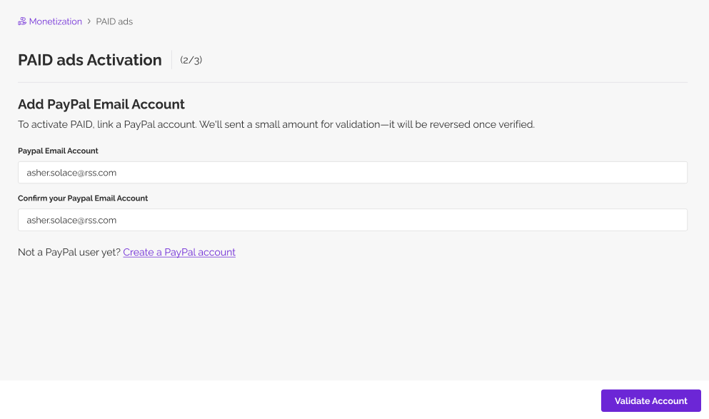To start receiving payouts, you must first activate PAID.