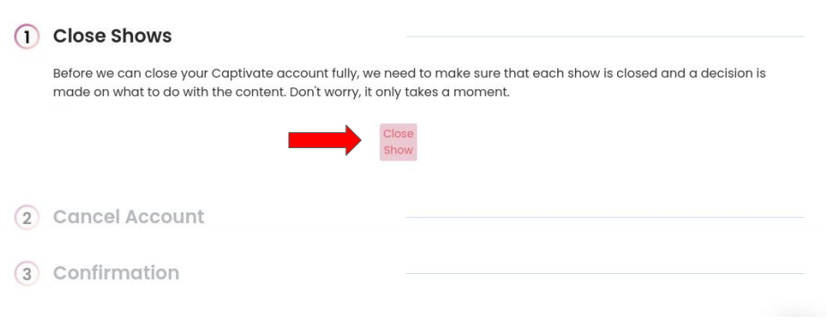 8. Confirma que quieres cerrar tu podcast en Captivate haciendo clic en "Close Show"