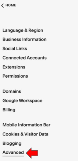 3. Desplázate al fondo de la lista y selecciona "Advanced"