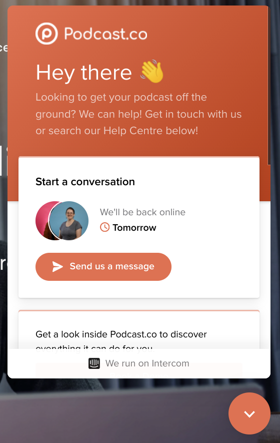 Per contattare il supporto è possibile usare il widget all'interno della pagina: https://www.podcast.co/